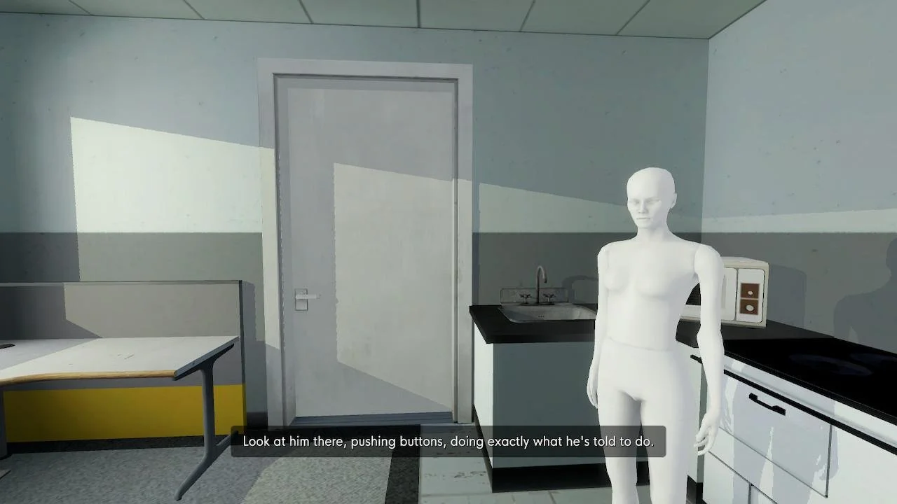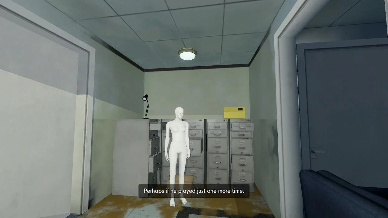 Foucault’s emphasis on these juxtaposed spaces being otherwise incompatible reminds me of the delineation we tend to draw between the real and the digital. This could be exemplified by something as simple as the idea of the acronym “IRL,” which in its very existence both presupposes a border between one’s “real” life and one’s screen life. It is imbued with an assumption that the texture of our experiences in the real are more immediate and pure, but which exists by way of this other, more ephemeral life. Culturally, video games have always been steeped in this idea of otherness. My living room couch does not feel like the neverending series of yellowed rooms and empty desks that make up the space of The Stanley Parable, as its narrator reminds me that turning off the game will be the only real decision I could ever make. But somehow, I still believe her and feel she is addressing me. I still feel the immediacy of her words as a regulatory force in my life; she is my boss, my parents, my god.
